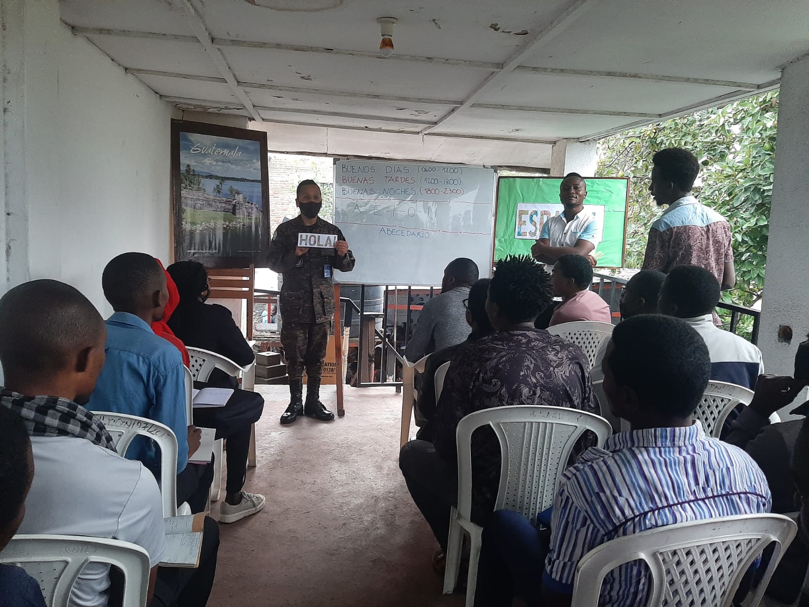 Este 8 de febrero, Soldados que forman parte del XXI Contingente de Fuerzas Especiales del Ejército de Guatemala, desplegado en la República Democrática del Congo, dieron inicio a un curso de aprendizaje del idioma español, que será impartido a alumnos de la Escuela de Idiomas "Congo Peace Network", en la ciudad de Goma, como parte de las acciones de apoyo a la proyección social y operaciones de Asuntos Civiles de la Misión de Estabilización de las Naciones Unidas en este país.