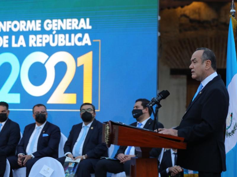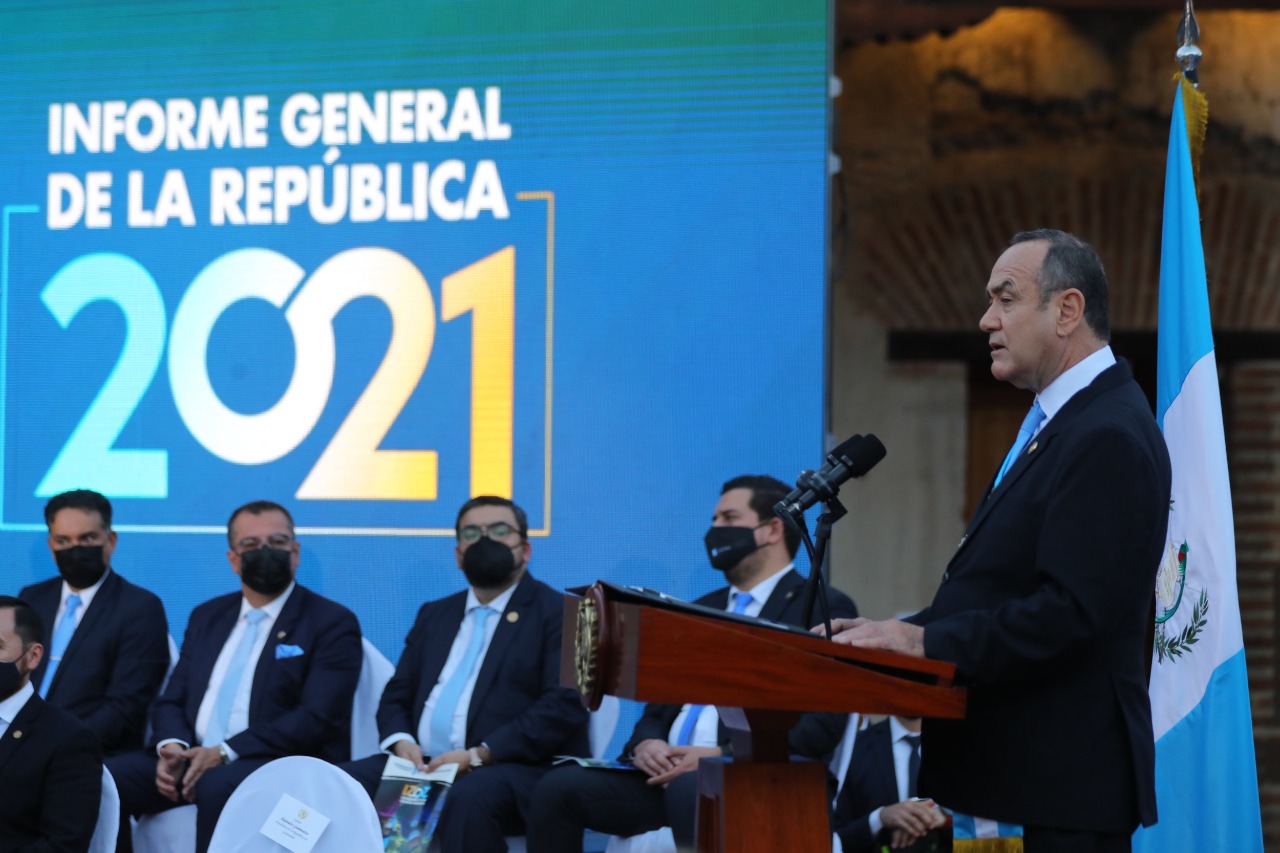 Hoy, cumpliendo con los principios democráticos y la rendición de cuentas y transparencia, me complace presentar al pueblo de Guatemala el Informe General del Organismo Ejecutivo de la República correspondiente al año 2021, que detalla los principales logros, pero sobre todo los desafíos de la Política General de Gobierno 2020-2024.
