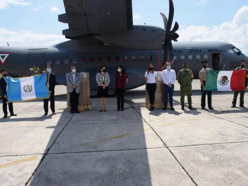 El Gobierno de Guatemala recibió ventiladores mecánicos que fueron donados por el Gobierno de México, y en cuyo acto de entrega participaron Ava Atzum Arévalo de Moscoso, Viceministra de Relaciones Exteriores; Francisco Coma, Viceministro de Hospitales del Ministerio de Salud Pública y Asistencia Social (MSPAS); y Laura Elena Carrillo Cubillas, directora ejecutiva de la Agencia Mexicana de Cooperación Internacional para el Desarrollo (AMEXCID) La donación arribó a la Fuerza Aérea Guatemalteca en un avión de la Fuerza Aérea Mexicana que trasladaba cuatro dispositivos médicos de ventilación mecánica, los cuales serán distribuidos por el MSPAS y permitirán a los profesionales de la salud estar mejor preparados para atender a pacientes de COVID-19.