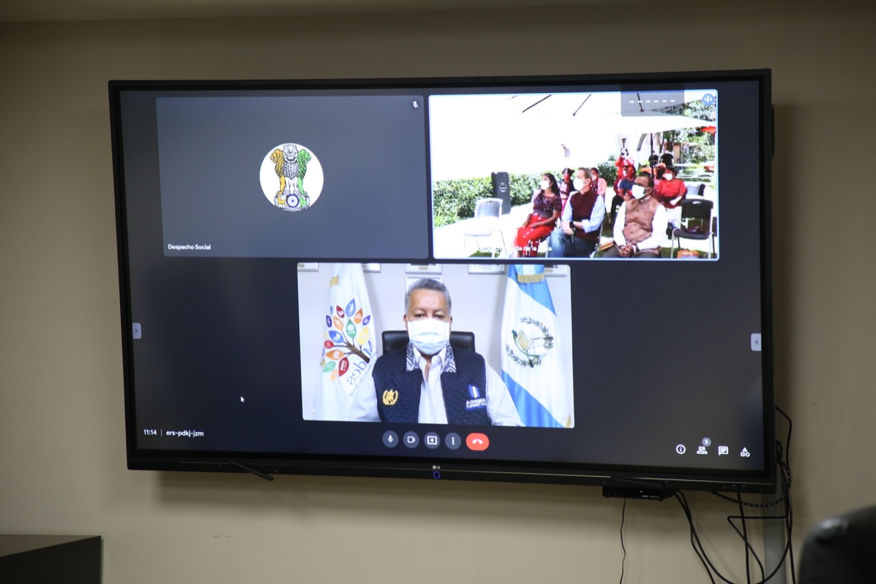 El ministro de Desarrollo Social, Raúl Romero Segura, y el personal de la Unidad de Cooperación Internacional sostuvieron una reunión virtual el 21 de julio 2021 con el Embajador de la India en Guatemala, Excelentísimo Señor Bawa Mubarak, y su equipo técnico. También asistieron las mujeres originarias de Alta Verapaz y Quiché que fueron beneficiadas.